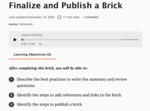 All of the quick and easy steps on how to publish a brick can be found here: https://exchange.scholarrx.com/brick/yog9m3genqkp